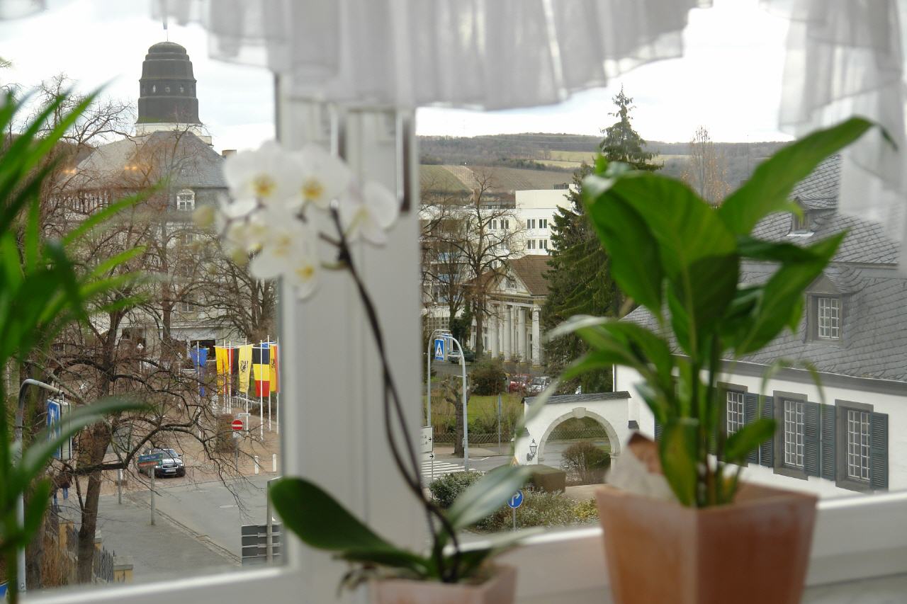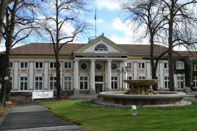 Ja, das ist der Blick aus Ihrer Ferienwohnung. Die FeWo befindet sich direkt am Kurpark mit dem bekannten Thermalbad Ahr-Thermen. Auf dem Bild oben ist es das Gebäude mit den Säulen.